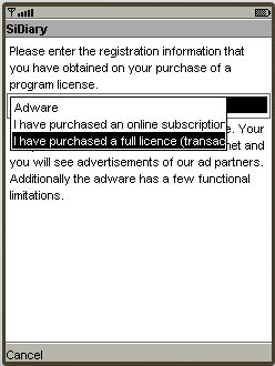 If you have purchased a SiDiary USB stick, you can find the transaction number by starting SiDiary on the stick and then switch into the menu 'Help -> Register'.