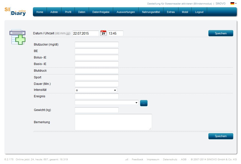 Ñ SiDiary Online óïðàâëåíèå äèàáåòîì ñòàíîâèòñÿ åùå áîëåå äîñòóïíûì. Äëÿ èñïîëüçîâàíèÿ äîñòàòî÷íî âåá-áðàóçåðà (íàïðèìåð: Internet Explorer, Firefox èëè Safari). Òàêèì îáðàçîì SiDiary äîñòóïåí òàêæå äëÿ ïîëüçîâàòåëåé Linux è Apple. Êðîìå òîãî SiDiary Online îòëè÷íî ïðåäíàçíà÷åí äëÿ áðàóçåðîâ ìîáèëüíûõ óñòðîéñòâ (ñìàðòôîíîâ, Blackberry, Android èëè iPhone): Ñâîáîäíàÿ ïàìÿòü èñïîëüçóåòñÿ íàèëó÷øèì ñïîñîáîì è ïðè æåëàíèè ìîãóò áûòü àêòèâèðîâàííû Cookies, îáëåã÷àþùèå âõîä.Çäåñü âû íàéäåòå âñå ôóíêöèè, ñ êîòîðûìè âû çíàêîìû èç SiDiary. Âû ìîæåòå ñîçäàòü ñâîé ëè÷íûé ïðîôèëü, íåçàâèñèìî îò òîãî, ó âàñ äèàáåò 1-ãî òèïà, 2 òèïà èëè, åñëè âû èñïîëüçóåòå ïîìïîâóþ òåðàïèþ. Ìíîãèå èç îöåíîê, ñ êîòîðûìè âû çíàêîìû èç âåðñèè äëÿ Windows èëè ìîáèëüíûõ âåðñèé, òàêæå äîñòóï Èíòåðíåòå, à òàêæå ïîëíûå îò÷åòû, êîòîðûå âû ìîæåòå èñïîëüçîâàòü â Word, OpenOffice è ïðî÷èõ ïðîãðàììàõ. Òàêæå SiDiary Online âû÷èñëÿåò óðîâåíü ãëèêèðîâàííîãî ãåìîãëîáèíà ïðè ïîìîùè äàííûõ ñ ãëþêîìåòðîâ. Ïîïóëÿðíàÿ ôóíêöèÿ òðåíäîâîé äèàãíîñòèêè òàêæå ïðèñóòñòâóåò â SiDiary Online.