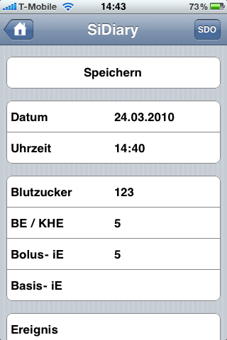 Dort haben Sie die Möglichkeit, Daten zu Ihrer Diabetes-Therapie zu erfassen, ohne dass Sie die Seite erst vergrößern müssen. Auch das Scrollen ist dann nur noch vertikal (von oben nach unten) nötig, um weitere Details zu sehen.